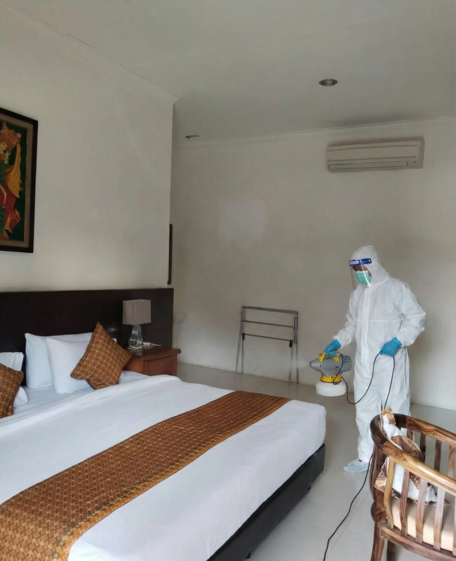 Proses dilakukan secara menyeluruh oleh tim teknisi profesional dengan standar keamanan tinggi, untuk memastikan seluruh area termasuk permukaan sulit dijangkau benar-benar steril dan aman digunakan kembali.